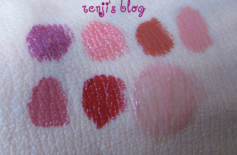 | From Left, Pandora,Snow White,Hope,Margerita,Ulysses,Frappacino,7th shade is Milla Purple from Loreal(712) |